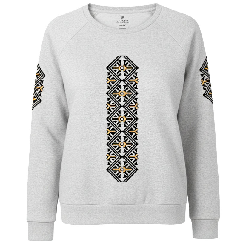 Bluza sport, material premium 85% bumbac organic și 15% poliester reciclat, grosime material 300 g/m². Croială lejeră, feminină și confortabilă. Culoare gri.